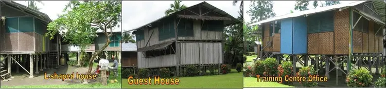 The Abau Training Centre (ATC) with all residences consists of approximately 10 buildings. Not all of them are permanent buildings. They are located on two well-maintained areas which are linked by a walking path. The smaller area contains the main residential building, an L-shaped house with adjoined class room. The larger area contains all the other buildings. The total complex has a total of seven water tanks. (Total capacity, 15000 gallons).